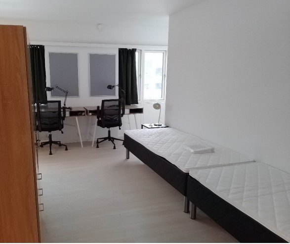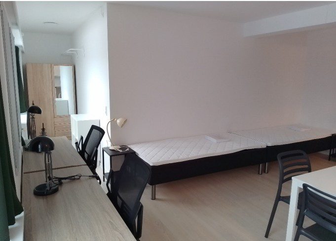 Mid-sized student dormitory with 82 studio rooms and a communal kitchen. We have reserved 15 single rooms, and 1 family apartment.
